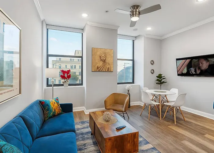 Crane Arts y la Campana de la Libertad están a tan solo 350 metros y a unos 2 km de este apartamento de 70 m², respectivamente. Desde el Apartamento Modern Nolibs 1Br - Pool & Gym, el Mercado Reading Terminal está a unos 10 minutos en coche.